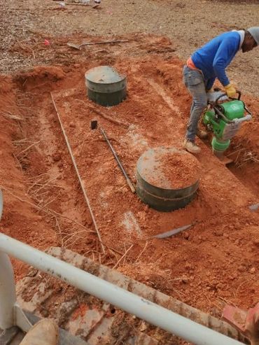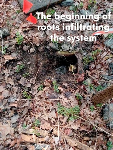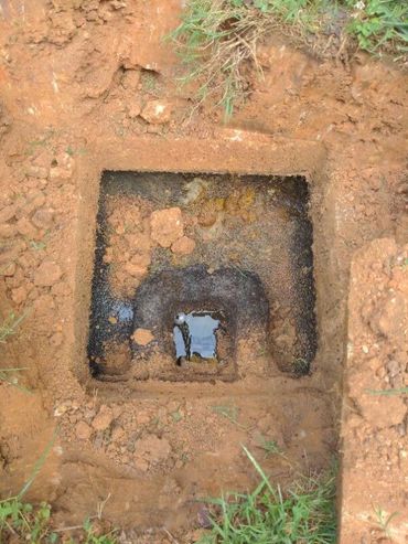 Water level before cleaning the filter. The water level here is high because the filter is stopped up and water cannot flow through.